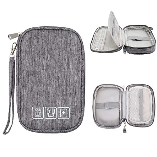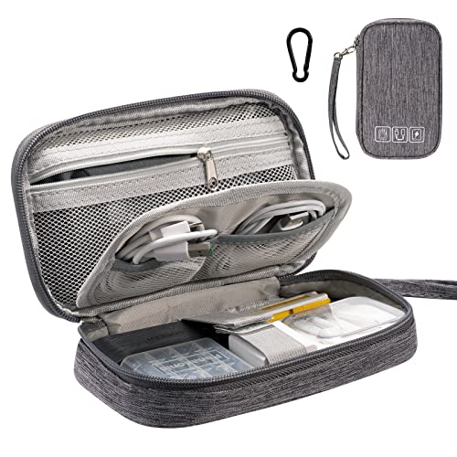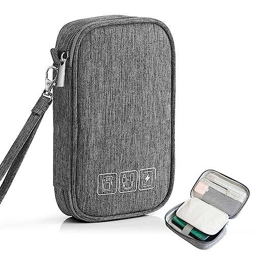 SIMTOP Kabel organisatörväska liten, vattentät kabelarrangör resor elektronisk väska arrangör på språng för USB-laddkabel mus laddare mobiltelefon tillbehör powerbank lagring kabelväska, GRÅ, Small