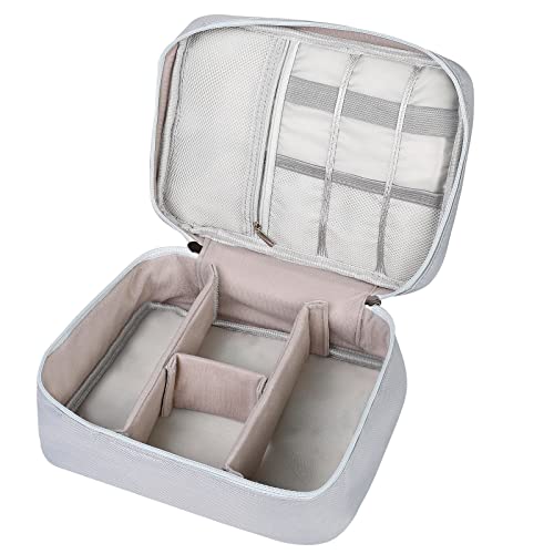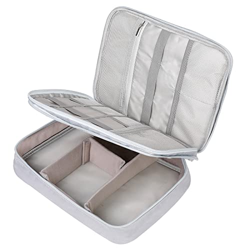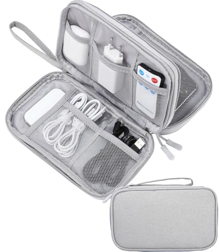 ACONDE Elektronisk väska arrangör, kabelväska, dubbla skikt universell kabel fodral elektroniktillbehör, för mobiltelefon, laddare, powerbank, GRÅ, resväska
