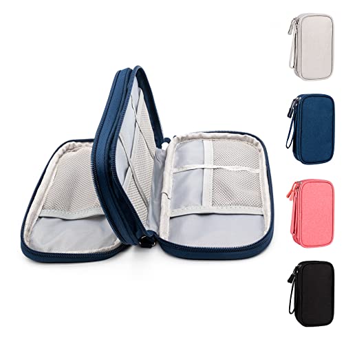 Ruyosn Kabelorganiserare väska vattentät liten kabelväska dubbla lager hårddiskväska elektronisk väska elektrisk organiserare kabelväska elektronik tillbehör organiserare kabel för resor, Mörkblå, M