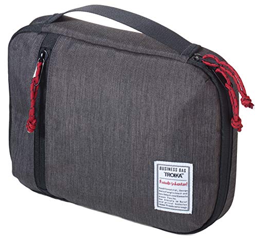 Troika Kabelväska för elektroniktillbehör med dragkedja och bärhandtag Business Tech Pouch, GRÅ, 190 x 260 x 40 mm, modern