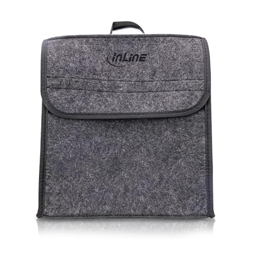 InLine förvaringsväska för billaddningskabel, kabelväska, bagageväska/arrangör, kardborreband och remmar med karbinhakar, bärhandtag, robust filttyg, grå, upp till 7,5 m, 16299I