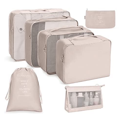 OSDUE Organiseringsset för resväskor i 7 delar, packkuber, vattentäta resepåsar för plagg, packkuber med tvättväska, USB-kabelväska