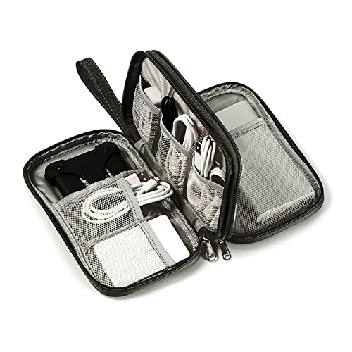 OrgaWise Väskor för Att Organisera Kablar Kabelväska för Resor Resekabelorganiserare för Bärbar Powerbank Kabel Laddare Telefon (Svart, 2 lager)