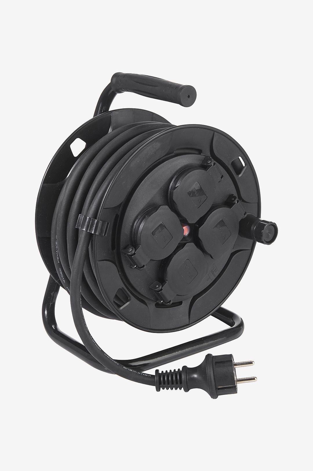 Kabelvinda 4 st uttag utomhus, 10 meter Svart
