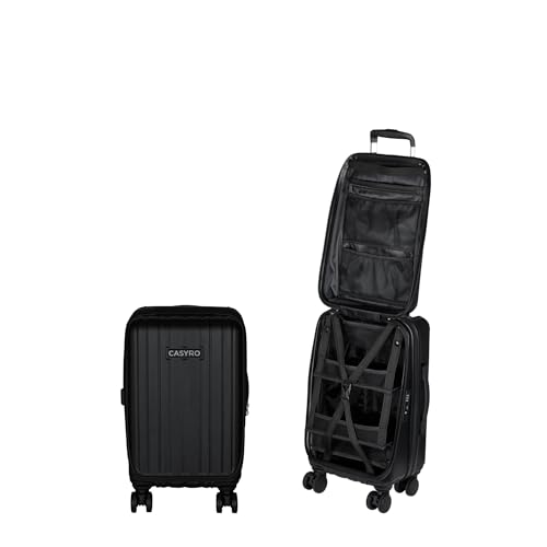 Casyro Resväska för hopfällning, handbagage hårt fodral med resväska, resväska, kan användas som garderob, rullväska med 4 hjul, 45 l, S, svart, svart, 55 x 34 x 23 cm, Resväska med hårt skal för