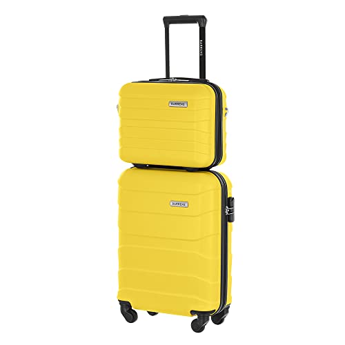BARRENS kabinväska + resekostnadsväska | Handbagage | Kabinväska 55x40x20cm 34l | Kosmetikväska 31x35x18cm 17l | Hållbart ABS-material | Gul