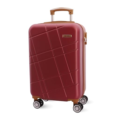 EL CABALLO Resväskor hytt resväska passar för Ryannair, robust flygplansbagage med 4 hjul 360° och hänglås, Vinröd, 55x40x20 cm, Kabinväska