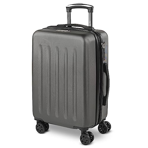 SKPAT - Kabinväska, Handbagage, 55x40x20, Lätt Vikt Och 4 Hjul - Stilren Trolley Med Och Hårda Skalet För Säker Och Smidig Resa, Utökningsbar Kompatibel med Ryanair, Antracit
