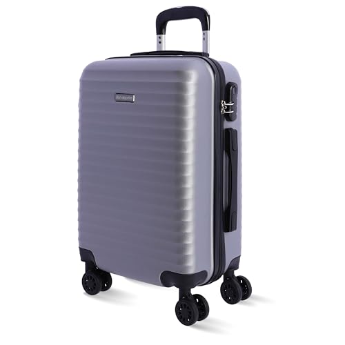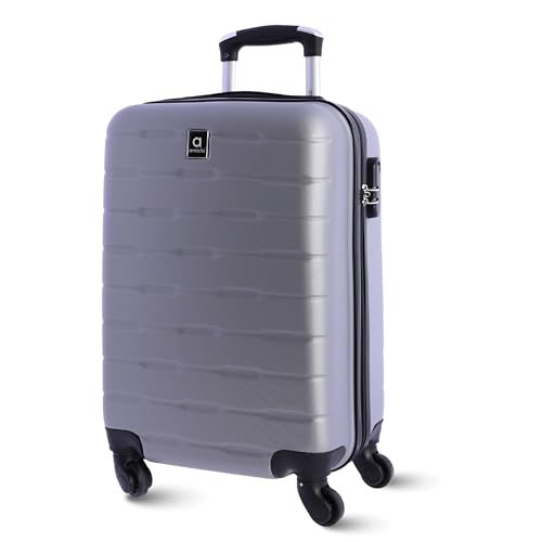 AMICHI Resväskor hytt resväska passar för Ryannair, robust flygplansbagage med 4 hjul 360° och hänglås, Silver, 55x40x20 cm, Kabinväska