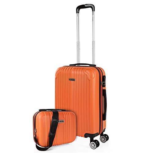 ITACA - Kabinväska, Handbagage, 55x40x20, Lätt Vikt Och 4 Hjul - Stilren Trolley Med Och Hårda Skalet För Säker Och Smidig Resa, Kompatibel med Ryanair, Mandarin