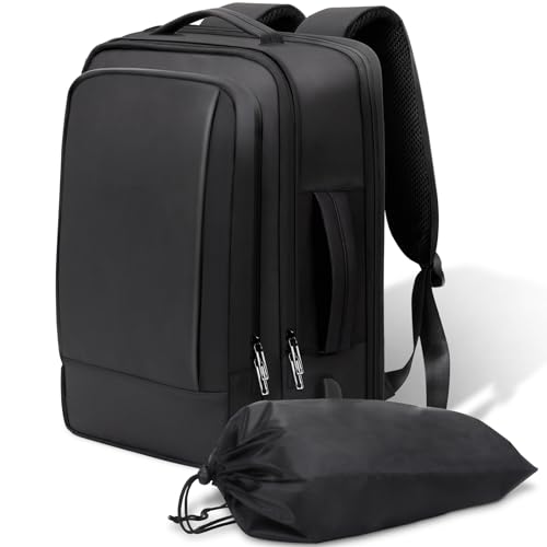 Alyvisun Handbagage Ryggsäck 42x30x20, Reseryggsäck 18,9-25,2 L Expanderbar, Kabinväska med Laptopfack och Skoficka, för Boarding, Affärer, Resor, Svart