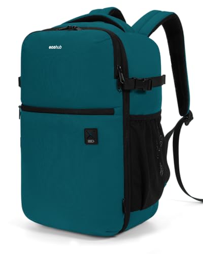 ECOHUB för Easyjet Handbagage Ryggsäck 45x36x20, Under Säte Kabinväska 30L, ReseRyggsäck med 17,3'' Laptop 3D-fack, 180°öppnin Flygplan Miljövänlig Kabinväskor, Travel backpack för Män Kvinnor,Blågrön
