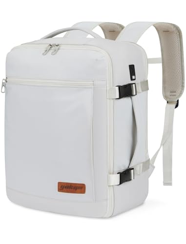 YOKGO Kabinväska Ryggsäck 40x30x20 cm - 24L Handbagage för Ryanair, SAS, Wizz Air - Vattenavvisande Reseryggsäck med 15,6" Laptopfack & Våt/Torr-Separering,Vit