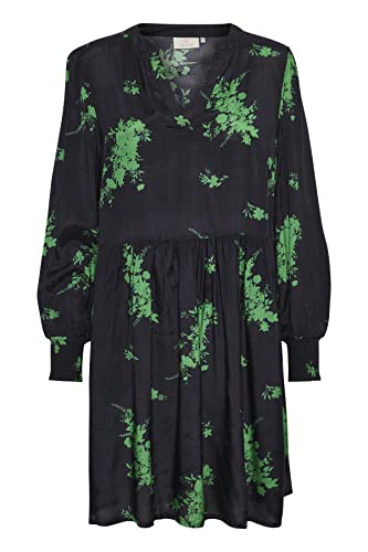 KAFFE dam klänning långärmad V-hals Below The Knee Casual, svart/grön 2-tonad blomma, 38
