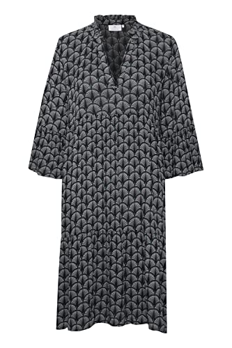 KAFFE Kvinnors skjorta klänning tryckt maxilängd lång ärm V-ringning vanlig passform, Svart djup, 44