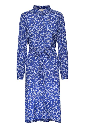 KAFFE dam Midi klänning blommig shorts casual ärmar, blå/kalkblomma tryck