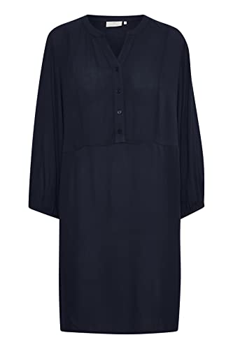 KAFFE dam klänning V-hals Above The Knee långärmad avslappnad, midnatt marinblå, 42