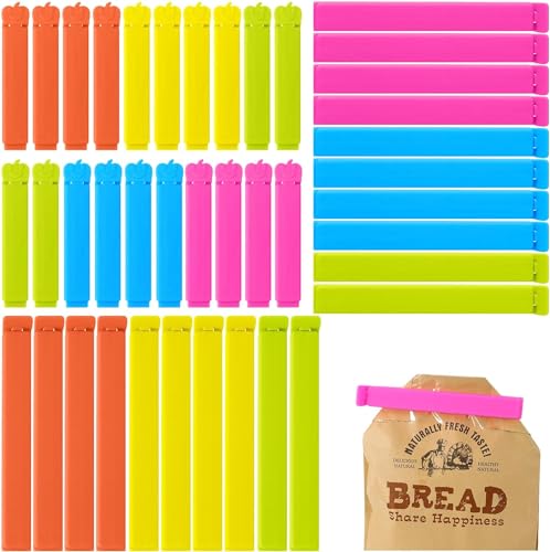 OMBRISA Stäng 40 st kökspåsar, klämmor stäng påsar 6/8/11 cm, köksmatklämmor för frys, snacks, torkad frukt, kaffe (40 st färgad)