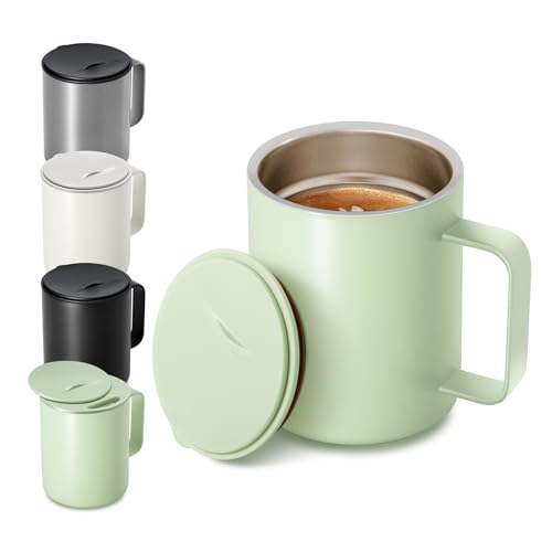 Homealexa Kaffemugg 400 ml, termosmugg med dubbla väggar, kaffe- och tekopp, i rostfritt stål, termosmugg med handtag och skjutlock (grön)