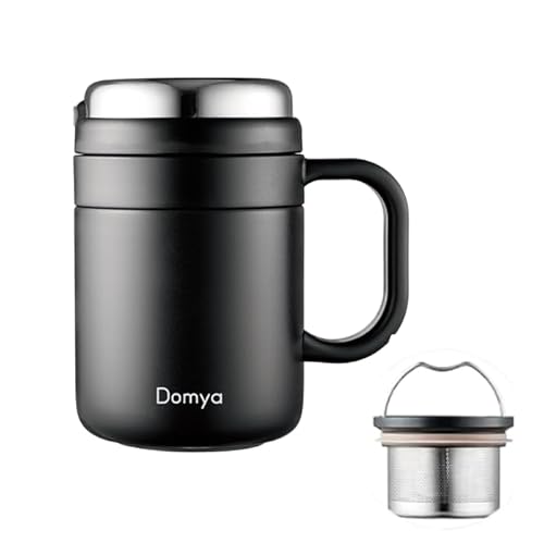 Domya Termosmugg i rostfritt stål (svart) med avtagbar sil, 500 ml - håller vätskor kalla och varma, 12 timmars isolering, perfekt för te, kaffe, resor, kontor och camping