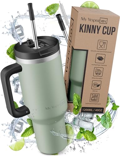 My Vesperbox Kinny Cup – termosmugg i rostfritt stål med handtag och sugrör (500/950/1200 ml) – isoleringsmugg To Go för kaffe, is och vardag – BPA-fri, läckagesäker, diskmaskinssäker