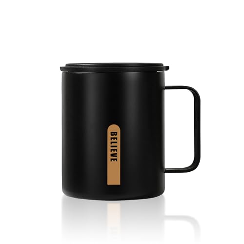 Boziee Termosmugg 316 rostfritt stål, dubbelväggig, isolerad kaffemugg med handtag, kaffe, to go kopp, BPA-fri, varm/kall, perfekt för kontor och hem, 400 ml (svart)