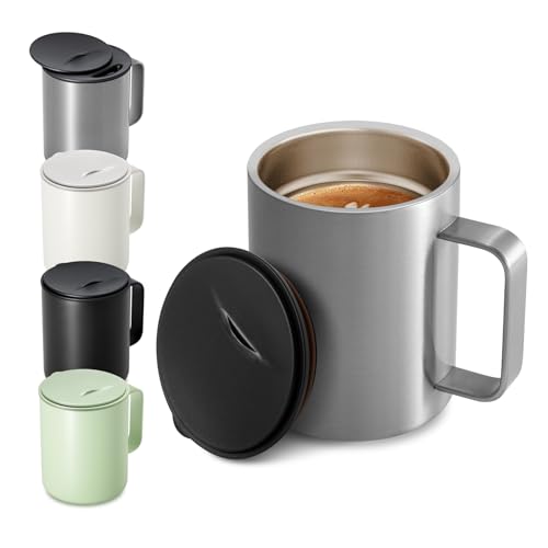 Homealexa Kaffemugg 400 ml, termosmugg med dubbla väggar, kaffekopp, termosmugg för kaffe och tekopp av rostfritt stål, termosmugg med handtag och skjutlock (silver)