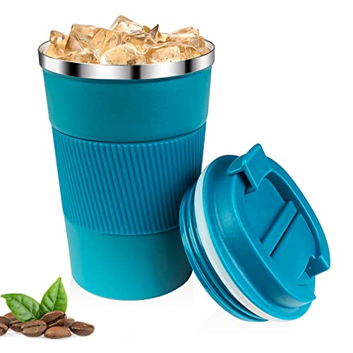 Relota Kaffemugg blå, 380 ml, termosmugg kaffe, läckagesäker tillverkad av 304 rostfritt stål, isolerad, bilmugg, återanvändbar kaffekopp, termosmugg för kaffe, vatten och te