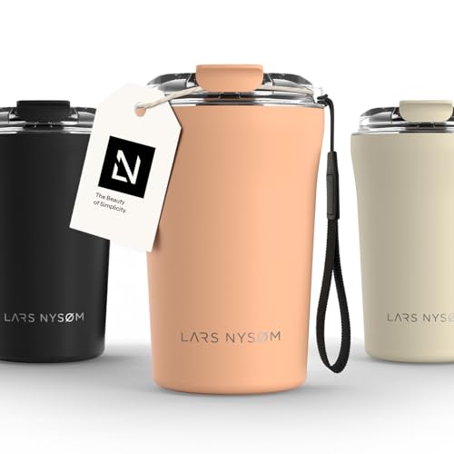 LARS NYSØM Thermo Kaffeebecher-to-go 380ml | er Travel Mug 0,38 Liter med isolering | Utsläppssäker rostfri termosmugg för kaffe och te på språng | Teebägare (Creamy Peach, 380ml)