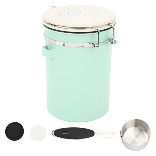 Kaffeburk, mintgrön, lufttät kaffebehållare av livsmedelssäkert rostfritt stål med spade, datumhjul för teötter (NOENNULL496v7eiurp-13)