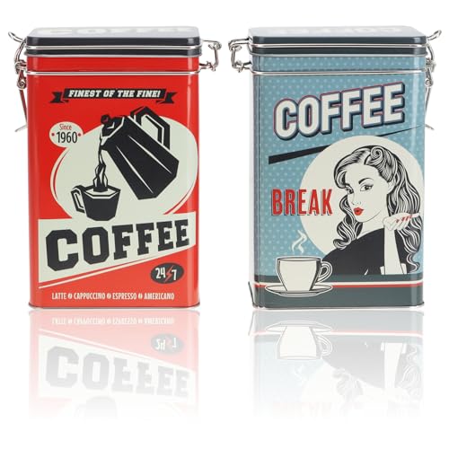 com-four® 2x förvaringsbehållare i metall - kaffebehållare med låsbart lock - metallbehållare i retrodesign för mat - förvaringslåda [urvalet varierar] (02 stycken - färgglatt kaffe)