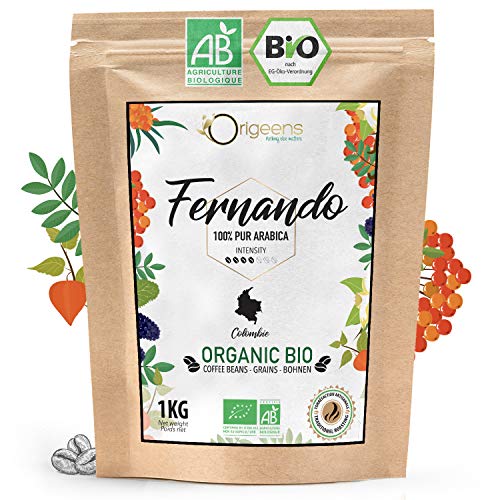 Origeens EKOLOGISKA kaffebönor 1 kg | Organiska Arabica kaffe hela bönor | Single Origin Colombia Fernando | Låg syra | Traditionell rostning