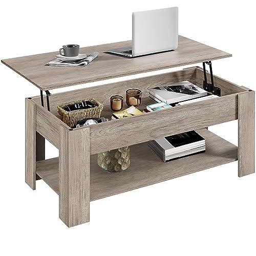 BAKAJI Kaffebord Vardagsrum Med Upphöjd Och Soffa Box Vardagsrum Modern Design Öppningsbar Melamin Trä Storlek 100x50x43cm (Beige)