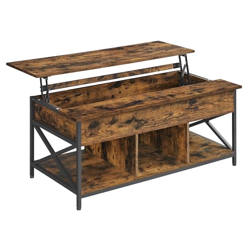 Vasagle LCT215K01 Soffbord, höjdjusterbart vardagsrumsbord, kaffebord, öppet och dolt förvaringsutrymme, X-stag, 60 x 120 x (48–62) cm, vintagebrunt-svart