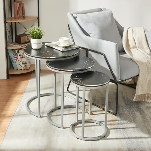 [en.casa] Bornholm sidobord i set om 3 kaffebord med hårnålar för vardagsrum 3 delar. av metall och spånskiva rund marmor, svart