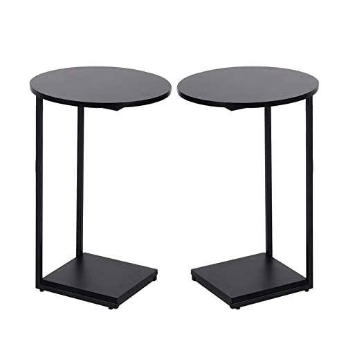 HDANI C-format sidobord, runt bord under soffan, sängbord, soffbord med metallram, litet kaffebord för vardagsrum, sovrum (svart, 2-pack)