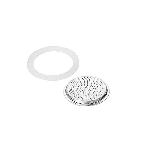 Universal kaffebryggare packning och filter för mockadelar (2 x silikon tätningsring 1 x stålfilter) (6 koppar)