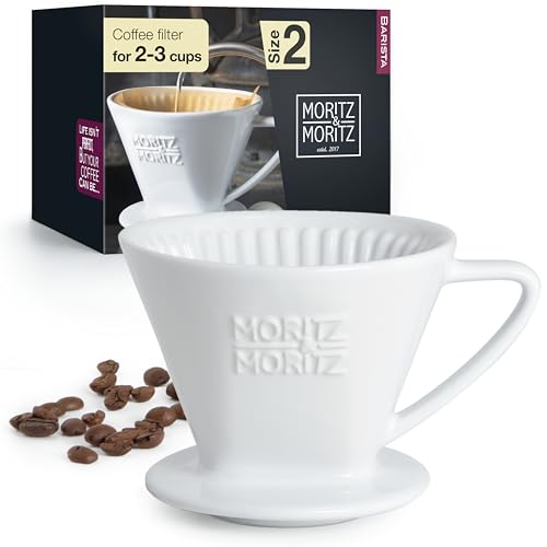 Moritz & Moritz permanent kaffefilter porslin storlek 2 – kaffefilterhållare återanvändbar – kompatibel med Melitta filterpåsar 1 x 2