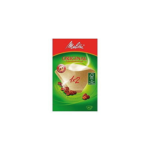 Melitta, 80 kaffefilter, storlek 1 x 2, för filterkaffebryggare, original, brun