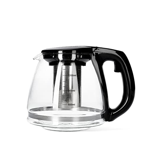 HOMLA Melzo te- och kaffekanna med bryggsil – för varma vätskor, örtbuljong – minimalistisk design glas plast rostfritt stål 1,4 l