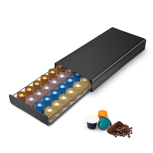 Kaffepåslåda, Kaffekapselhållare Kompatibel med Kapsellådan Rymmer 25 Kapslar, Hem Köksbänk Kaffe Kapsel Förvaringsfack, Klar