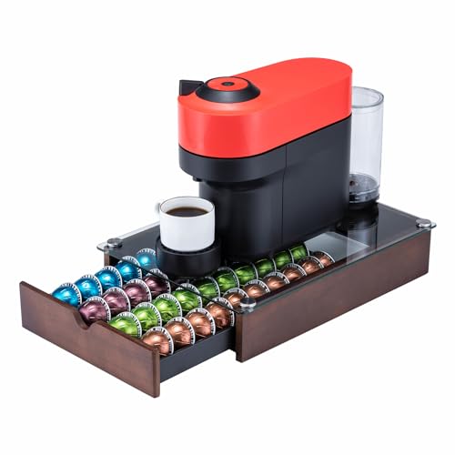 FlagShip Flaggskepp för Nespresso Kapselhållare Vertuo Podslåda Kaffekapselhållare för Vertuo Podd med elegant trätopp (50 kapselns kapacitet)