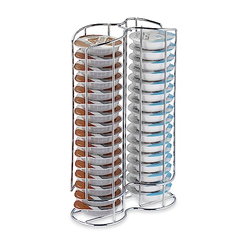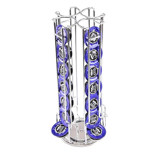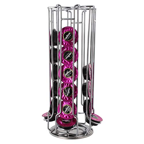 Universal 32 delar 4 rader Lavazza A Modo Mio DEK Cremoso kaffekapselhållare stativ med 360° roterbar bas, krom, silver, 15 x 15 x 31 cm