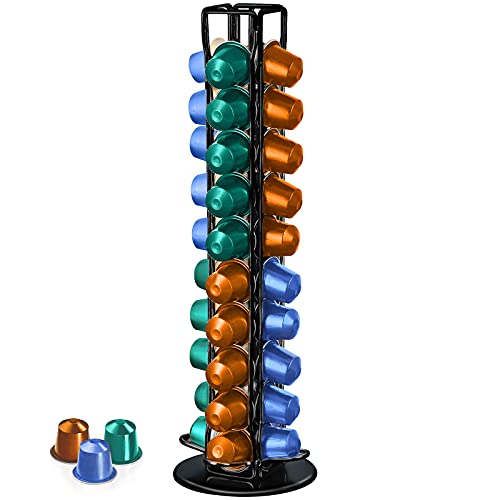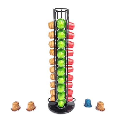 Lectorias Kaffekapselhållare, kaffekapselhållare för 40 kapslar, metallkapselhållare för kaffemaskiner, Nespresso kaffehållare, med 360° roterbar bas, robust, hållbar och lätt att rengöra