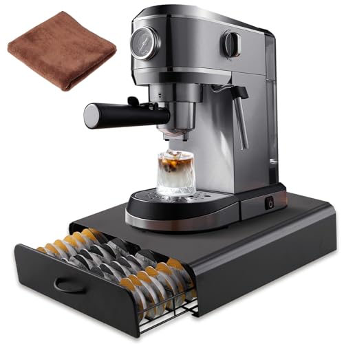 Bakaji Kaffekapselhållare och kaffekuddar, Nespresso Nescafé Lavazza av metall, utdragbar låda, silver och topp, svart (36 x 28 x 7,5 cm)
