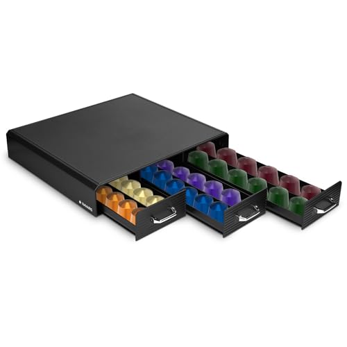 Navaris låda för kaffekapselhållare – förvaringsbricka för podförvaring, behållare, låda, stativ för bänkskiva, kompatibel med Vertuo storlekar på kapslar och kapslar – svart