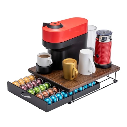 Dubbelskikt Vertuoline kapsel låda organiserare kaffemaskinstativ – HFHOME metall kaffekapselhållare för 100 Vertuo kapslar, kapslar och 100 Dolce Gusto Pod