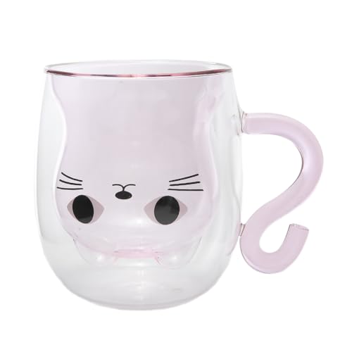 lachineuse - Kawaii rosa kattmugg - dubbelväggigt glas - kattsvans handtag - kapacitet 300 ml - kaffekopp, te, varm choklad, cappuccino - japansk deco mugg - Japan Asien presentidé