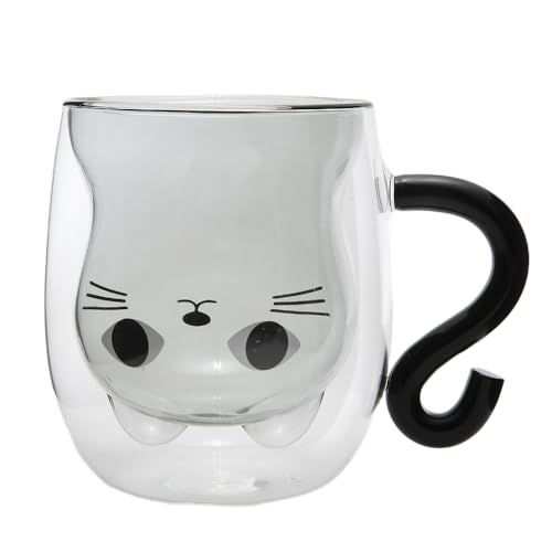 lachineuse - Svart Kawaii kattmugg - dubbelväggigt glas - kattsvans handtag - kapacitet 300 ml - kaffekopp, te, varm choklad, cappuccino - japansk deco mugg - Japan Asien presentidé