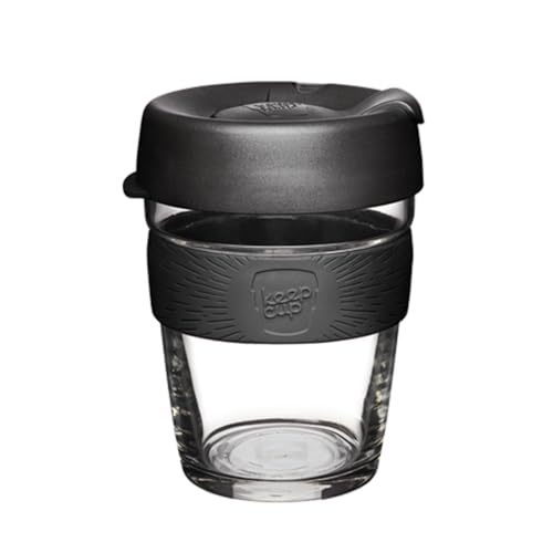 KeepCup bryggning, återanvändbar kaffekopp – härdat glas och stänksäker sipper, M 340 ml – svart